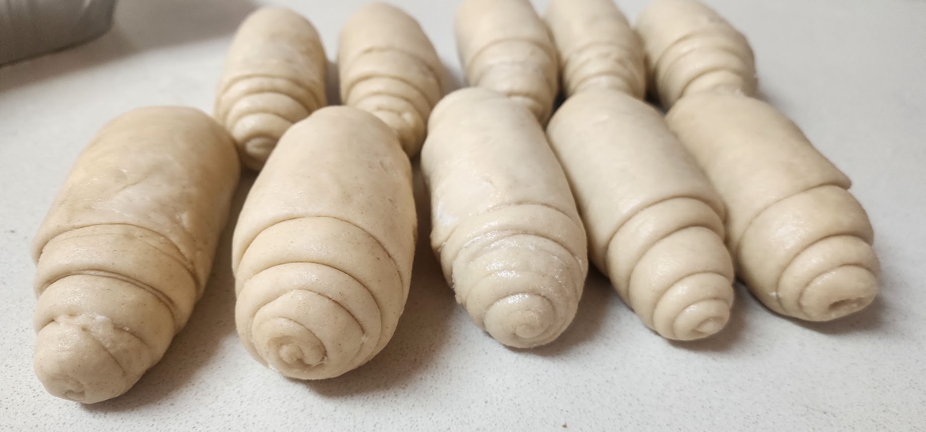 - לקפל: צד ימין למרכז, לשמן מעט, לכסות בבצק מצד שמאל