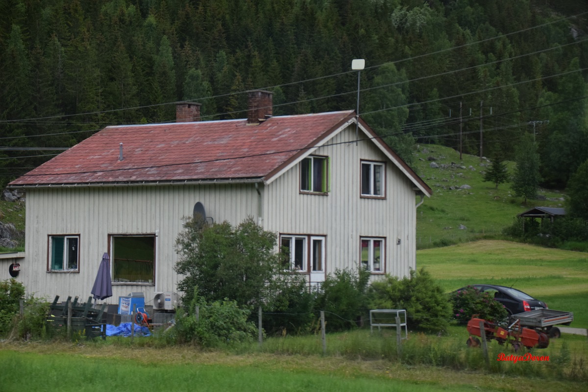 ממשיכים, בדרך הרבה קרוואנים, לכל משפחה כמעט יש קרוואן שאתו הם יוצאים לנופש, בתי עץ רבים, אנחנו בדרום נורבגיה, מלא כאן בתי נופש